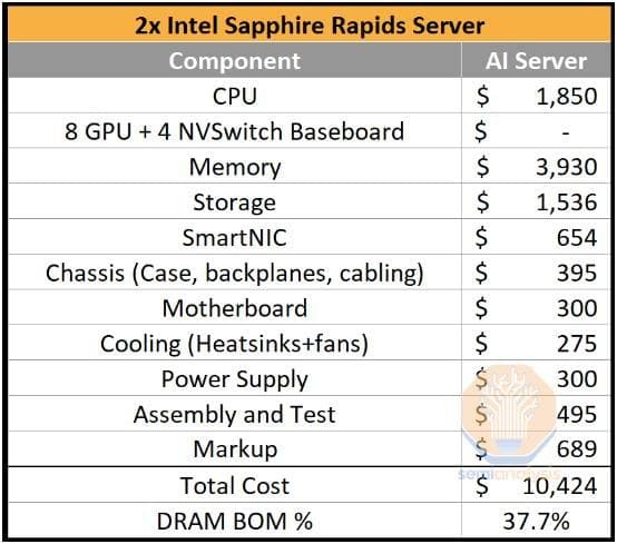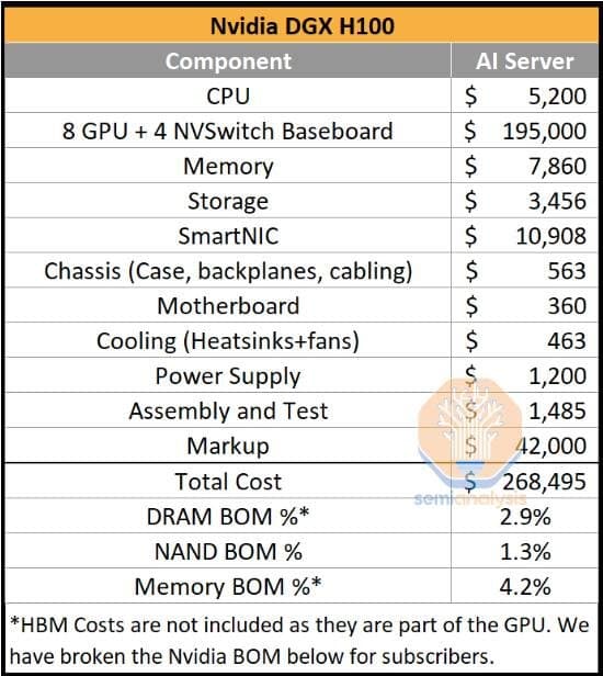 - - DGX H100의 Total DRAM = HBM + DRAM = $16,820 = 6.3% of BOM
