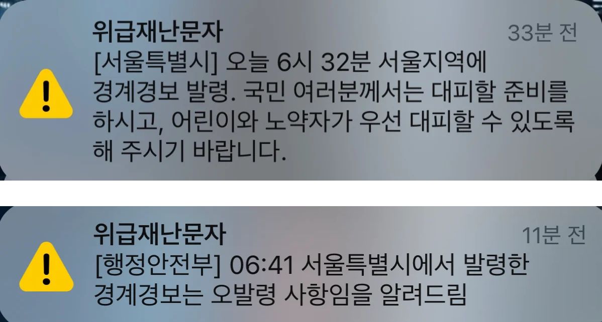 ロイター通信は「早朝に空襲サイレンと避難を促す携帯電話の警報音でソウルがパニックになった」とし「この日午前6時32分、ソウルでサイレンが鳴り始め、数分後に避難を促す警報が発令され、誤発信の事実が伝えられるまでソウル市民は動揺した」と状況を伝えた。ソーシャルメディアには「警報」「避難」がトピックに浮上し、状況確認や避難場所を問うコメントが続いた。