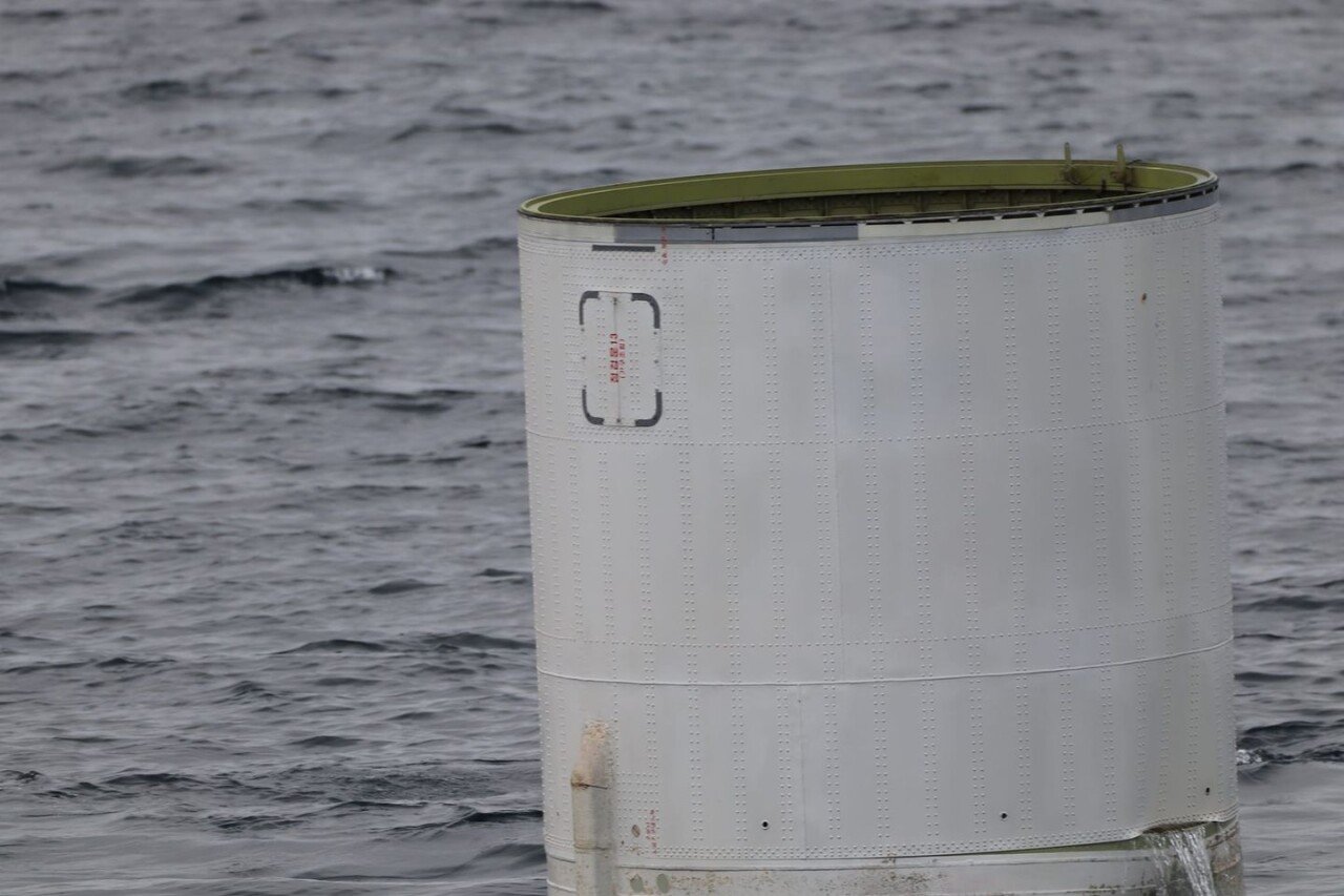 軍当局によると、発見された胴体は2段推進体の一部で、長さは15m、直径は2~3mほどで、現在水深75m地点に水平に横たわっている状態だ。 合参は前日、海の上に浮いている状態の胴体残骸写真5枚をメディアに配布した。 合参が公開した写真はこの胴体の一部で、発射体の全長は30mと推定される。