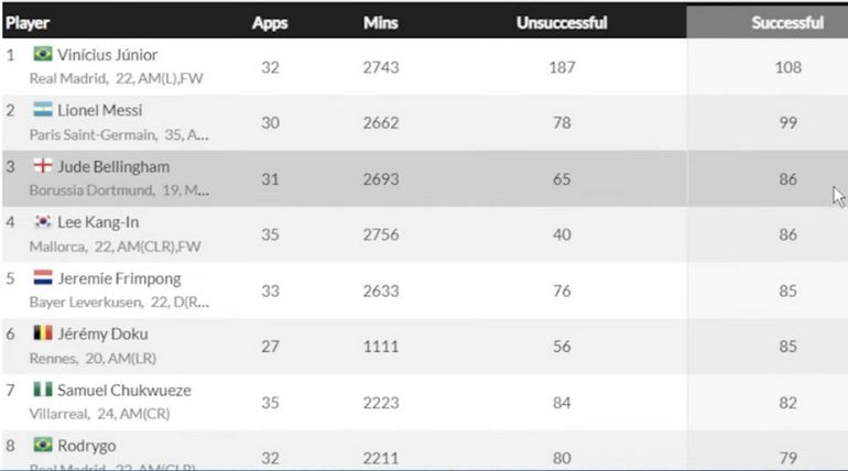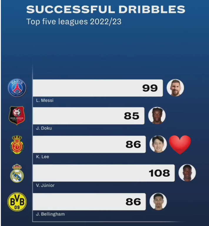 その5大リーグのドリブル成功数のグラフね