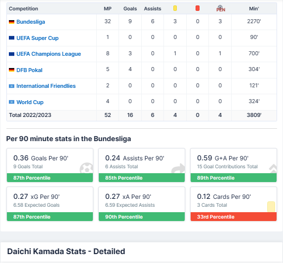 日本人はスポーツキャリアの中で最高のシーズンを過ごし、最終的にはチャンピオンズリーグのレアル・ソシエダのリーダーとなった。彼は9ゴールでリーグ最高得点を記録し、4アシストも記録した。彼は39回の得点チャンスを生み出し、ラスト3分の1で433本のパスを出し、「トゥシュリ・ウルディン」チームのライバルフィールドでボールを使ったアクションを最も多く行った選手でもある(149回)。リーグは違うが、ソン・フンミンも一回だけの受賞だね。