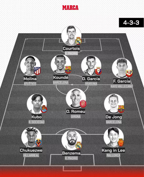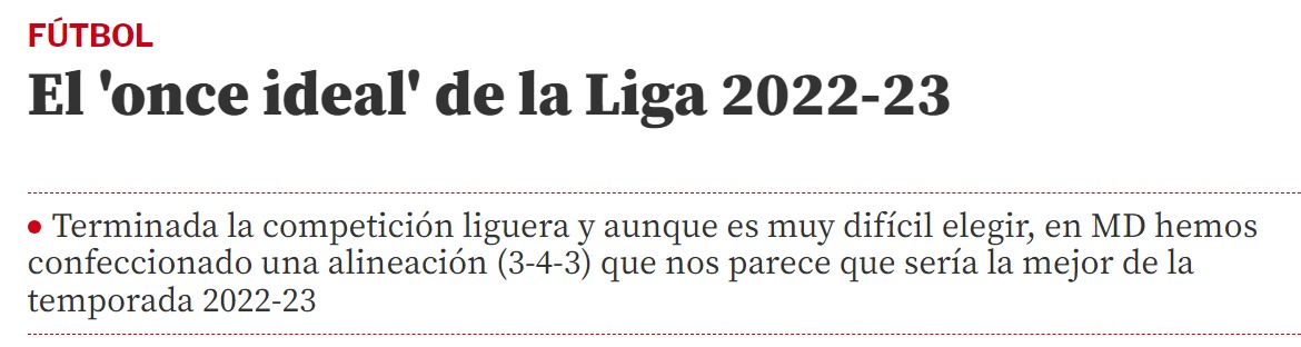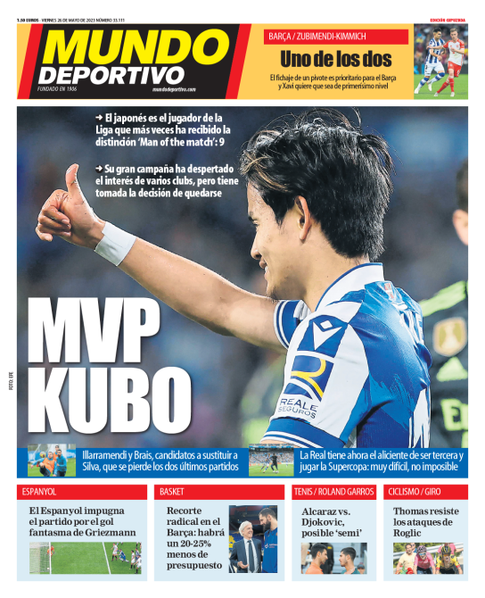 https://www.espn.com/soccer/story/_/id/37763806/2022-23-laliga-best-worst-players-season-vinicius-araujoスペインの大手紙『Mundo Deportivo』は久保のベスト11入りに注目。驚きをもってこう報じている。