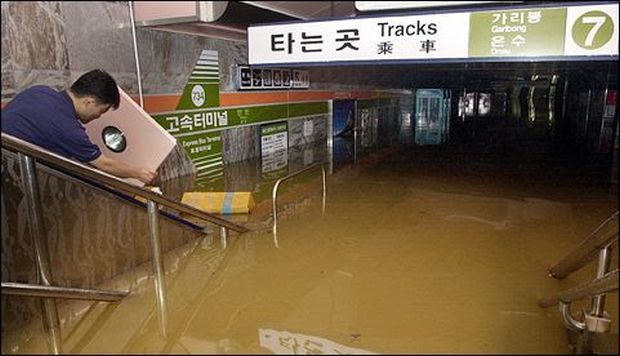 韓国の写真は地下鉄の駅(地下街?)・・・つまり、地下に浸水しているよね。
