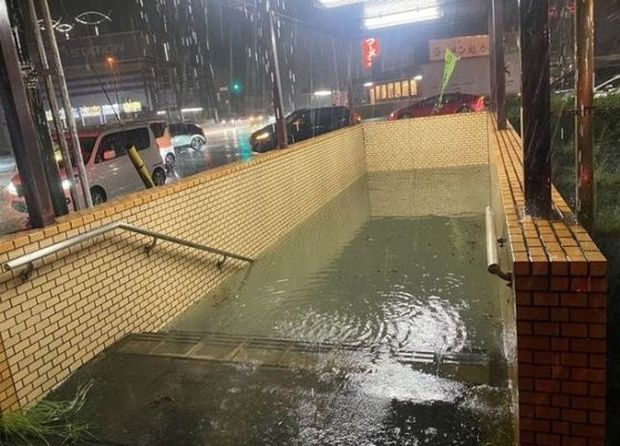これは台風サンサンによって浸水した日本の地下鉄の入り口だ。