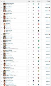 韓国人はランク外2024/12/28 更新 Transfermarkt市場価格順位