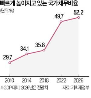 韓国が今のような国家債務比率の増加傾向を続けると、ギリシャやポルトガル水準で財政状況が悪化することが分かった。 高齢化とポピュリズムの南足で「福祉病」に苦しんでいる一部の欧州連合(EU)諸国と同じ道を歩くだろうという見通しだ。 財政赤字削減を先延ばすほど、将来の負担が増えるほど、政府赤字に上限を置く財政準則の導入をはじめ、財政改革が緊急だという指摘が出ている。