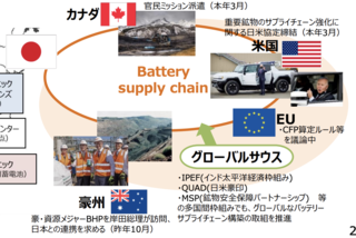 일본이 2030년까지 이차전지 산업 패권을 쥐기 위한 ‘글로벌 공급망 연합’ 구축을 추진한다. 미국과 유럽연합(EU)은 물론 세계 주요 자원 부국과 손잡고 이차전지 개발·생산 거점이 되겠다는 야심찬 계획을 내놨다.