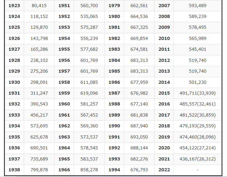 大正13年 12万238人 ↓なぜか大虐殺されたと言う朝鮮人が減るどころか増加しているw