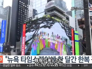 >日本の高校生たちに韓服を着て礼儀を教えた後、彼らと一緒に韓服を着て太極旗を持ったまま新大久保街を行進する。