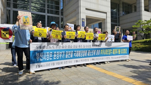 "釜山(プサン)の市民団体はパク・ヒョンジュン釜山市長に対し、日本による福島第一原発の核汚染水の海洋放出を止めるために、国際海洋法裁判所(ITLOS)への提訴を尹錫悦(ユン・ソクヨル)政権に建議するよう求めた。"