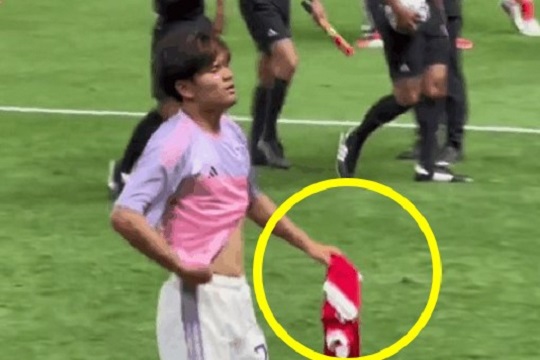 [마이데일리 = 이현호 기자] 일본 대표팀 미드필더 쿠보 타케후사(22·레알 소시에다드)가 상대 선수와 맞바꾼 유니폼을 그라운드에 던져두고 떠났다.