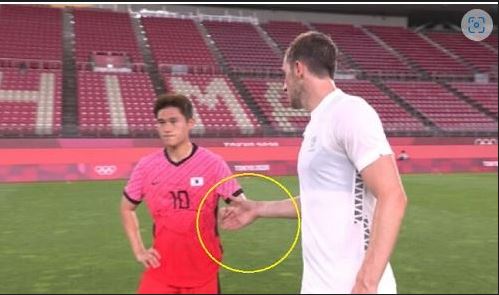 경기 종료 후 유니폼을 교환하는 장면에서 문제가 발생했다. 페루 수비수 알렉산더 칼린스(31·지로나FC)가 쿠보에게 다가와 유니폼 교환을 요청했다. 두 선수는 서로 유니폼을 맞바꾸고 손을 맞잡았다. 여기까지는 여느 친선경기와 다를 게 없었다.