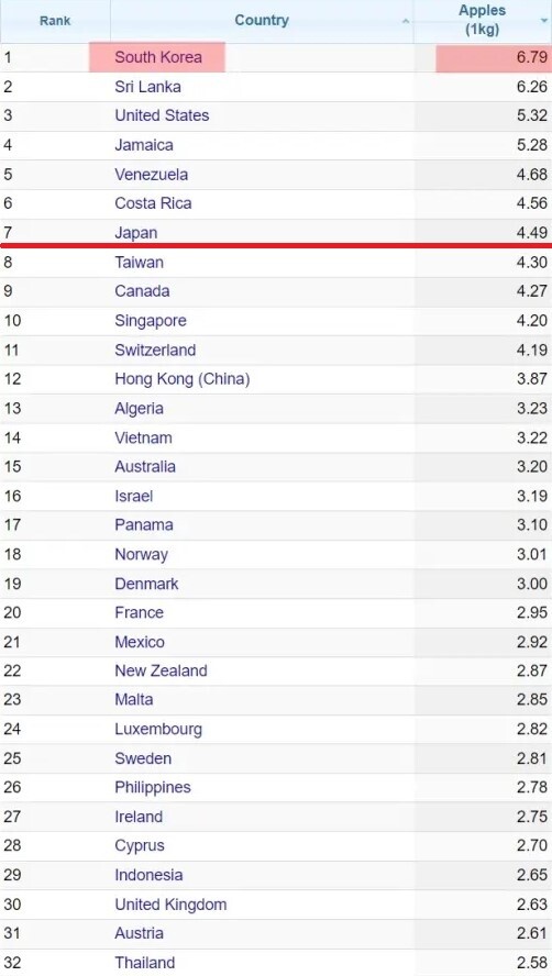 韓国で2月の果物の価格が前年同月比40.6%も値上がりする中、全19品目中6品目は50%を超える上昇率を記録した。