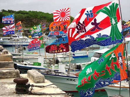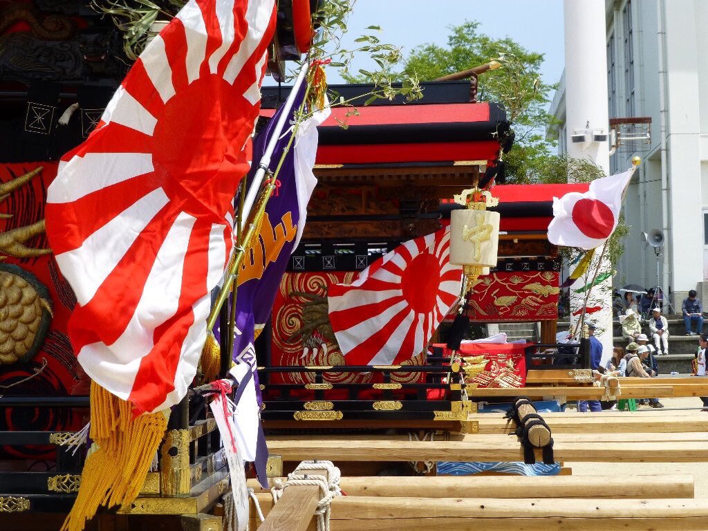 祝典、催事の紅白の横断幕や垂れ幕も、旭日旗から来ている物なんだよ。