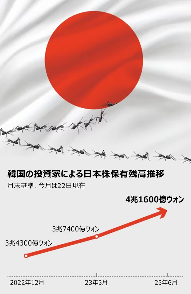 歴史的な円安で33年ぶりの活況を呈している日本株に韓国の個人投資家が群がっている。6月の韓国の個人投資家による日本株保有残高は過去最大を記録し、月別の買い越しも「コロナ特需」以降最大となった。