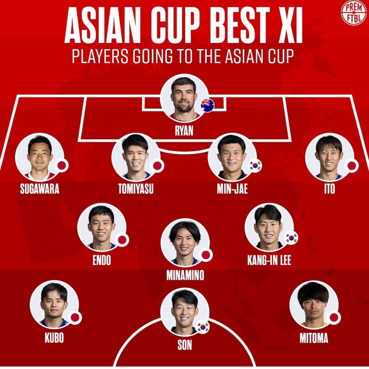 海外メディア『premftbl』が、アジアカップに出場予定のスターからチョイスしたベストイレブンを発表した。
