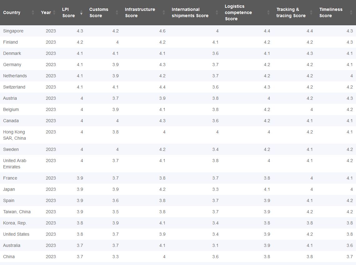世界銀行が貿易・物流の効率性についてランク付けした2023年版「物流パフォーマンス指数(LPI)」で、韓国は139カ国・地域中17位だった。世界ランキングで20位以内に入るのは今回が初めて。