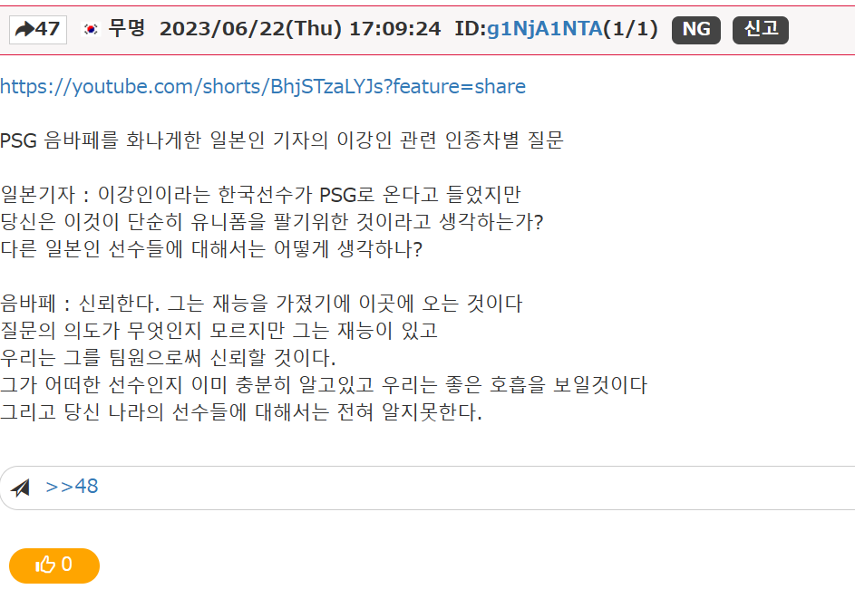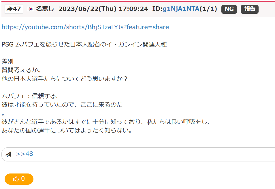 悪意あるこの韓国YouTubeの目的は、エムバペは日本に興味がなく「韓国に対して親韓」であるかのような錯覚を与え、日本人を傷つけることだった。