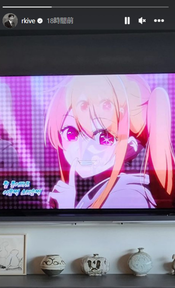 さらにはSNSを通じ、心に響いた楽曲や芸術作品などを頻繁にファンに共有しているRM。そんな彼が、7月2日に自身のInstagramにアップした1枚の写真が、注目を集めている。彼がストーリーに投稿した写真には、アニメ『推しの子』を映したテレビ画面が。そこはRMの自宅と思われ、彼は現在、『推しの子』を視聴中であることを世界に公表したのだ。ノージャパン