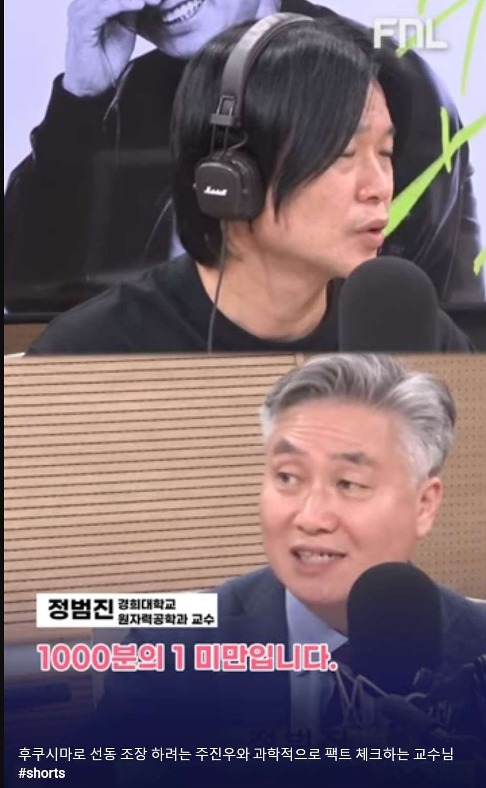 先月6日に放送されたKBSラジオ『チュ・ジヌ・ライブ』には慶煕大学原子力工学科のチョン・ボムジン教授が出演し、司会者の話に一つ一つ反論して話題になった。同教授はこの時、「2011年の福島原発事故直後は処理施設が全くないまま数カ月間、一日300トンずつ汚染水が海に放出されたが、韓国に影響はなかった」という言葉で司会者に反論した。KBSの関係者は「この時、想定外のことを経験して以降、制作スタッフ陣は科学者のパネリスト出演オファーに慎重を期していると聞いた」と言った。