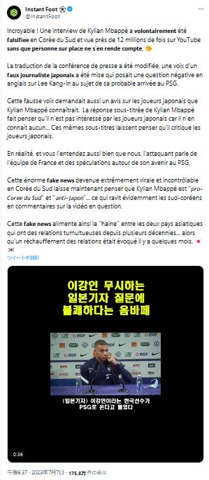 「日本人を傷つけるのが目的だ」エムバペを“悪用”した韓国のフェイク動画に仏メディアが怒り!