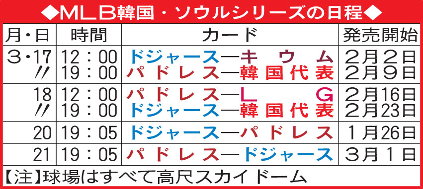ドジャース―パドレスの来季開幕戦 ソウルで開催へ=韓国で初の公式戦