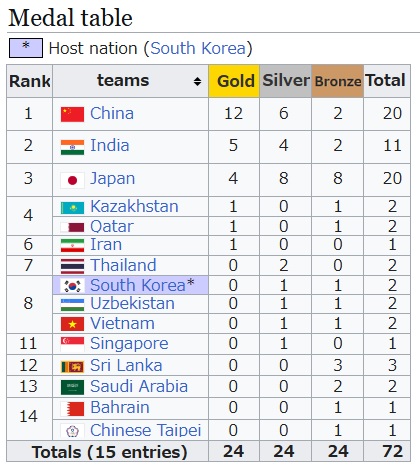 なかなか更新されないけれども、インドがかなりメダルを獲っているなあ、という印象。