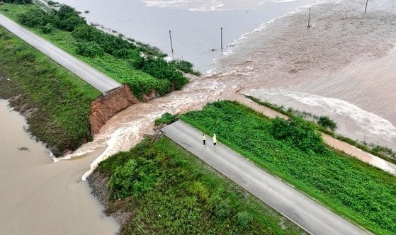 五松(オソン)住民「決壊した臨時堤防、砂をかき集めて積んでいた」