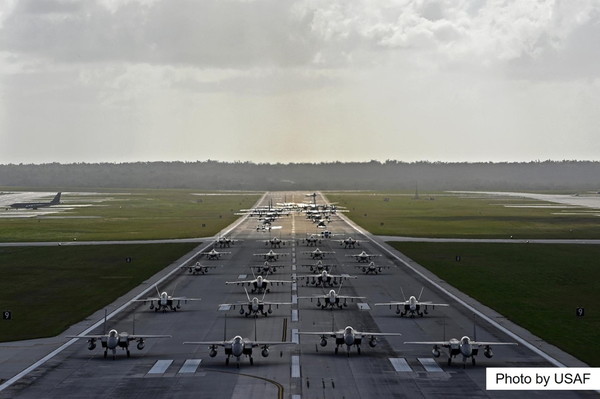 アメリカ太平洋空軍(PACAF)は2023年7月19日、グアム島にあるアメリカ空軍のアンダーセン飛行場で、日本、アメリカ、イギリス、オーストラリア、カナダ、フランスの6か国で一大「エレファントウォーク」を実施したと発表しました。