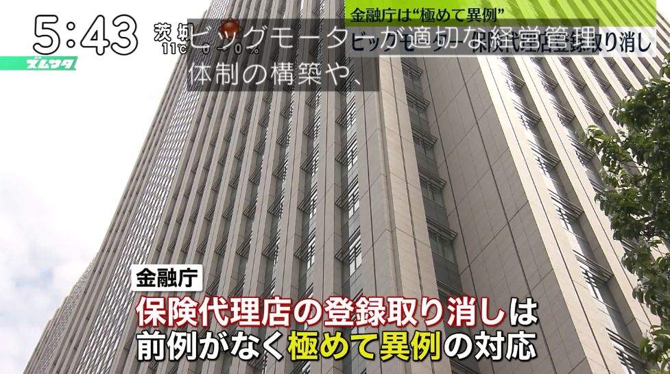 金融庁はビッグモーターの損害保険代理店としての登録を今月末で取り消す処分を行いました。