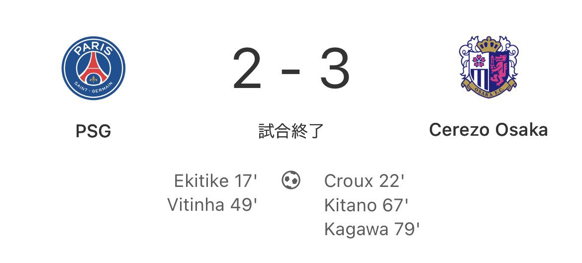 翌日日本のクラブがPSGに勝利w