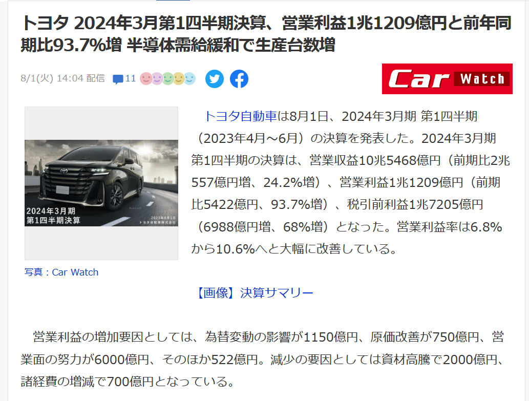 トヨタの決算(2023年4月~6月)は