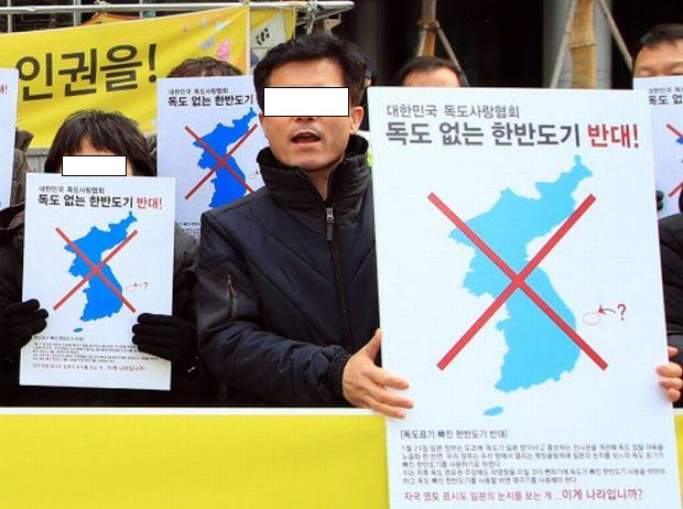 でも、使ってる統一朝鮮国旗は、北端がイルベコラージュの盧武鉉国旗w