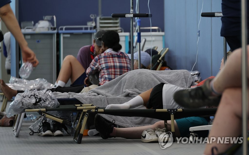 16名無し2023/08/04(Fri) 08:35:26ID:cyOTU4MTI(2/127)NG報告>>9世界ジャンボリーで100人以上が熱中症韓国南西部の全羅北道・セマングムで開催中のボーイスカウト・ガールスカウトの世界大会「世界スカウトジャンボリー」の大会組織委員会は3日、前日の開営式で108人の熱中症患者が発生したと明らかにした。組織委員会は猛暑を考慮して会場内のプログラムの一部を中止する方針を示した。会場内の病院で治療を受けている患者=(聯合ニュース0