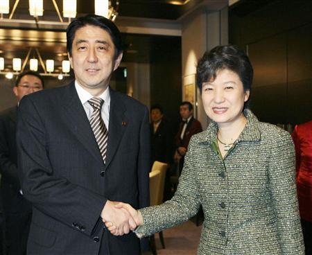 安倍首相は初の正式な首脳会談となる韓国の朴槿恵(パク・クネ)大統領に笑顔をで朝鮮語で