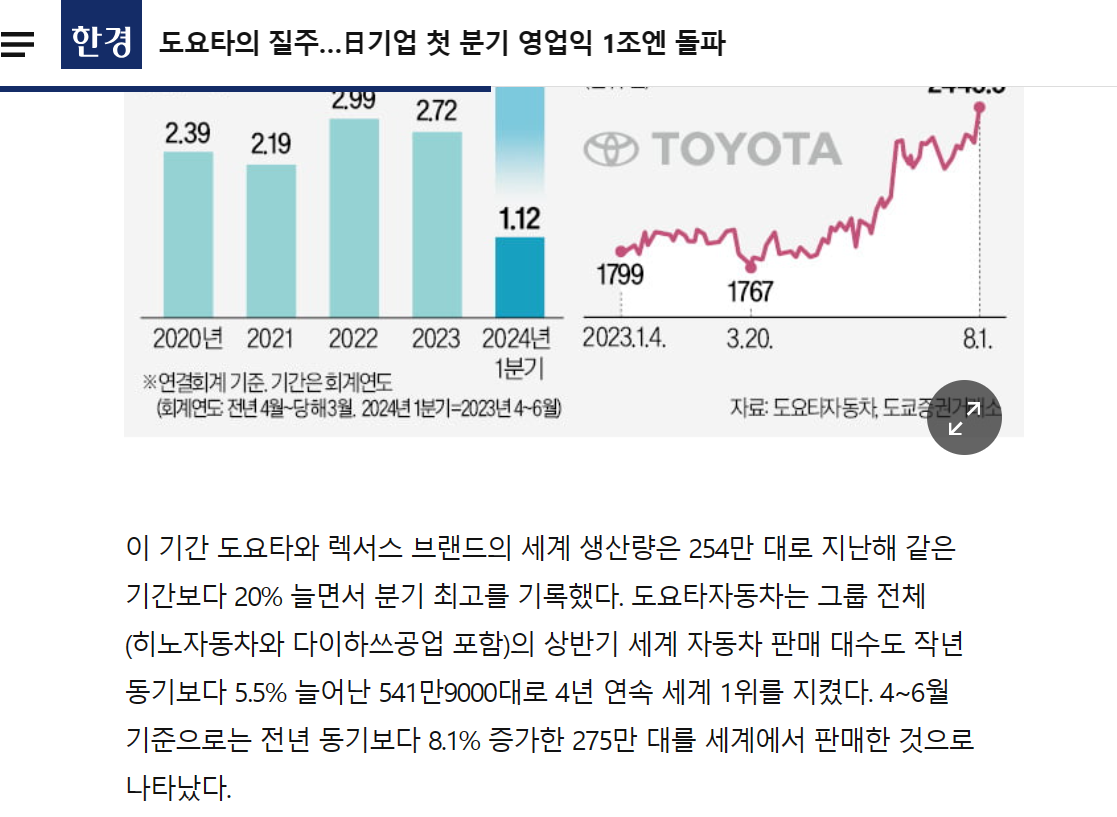 ★トヨタは2023年度第1四半期の売上が10兆5468億円(約94兆6000億ウォン)