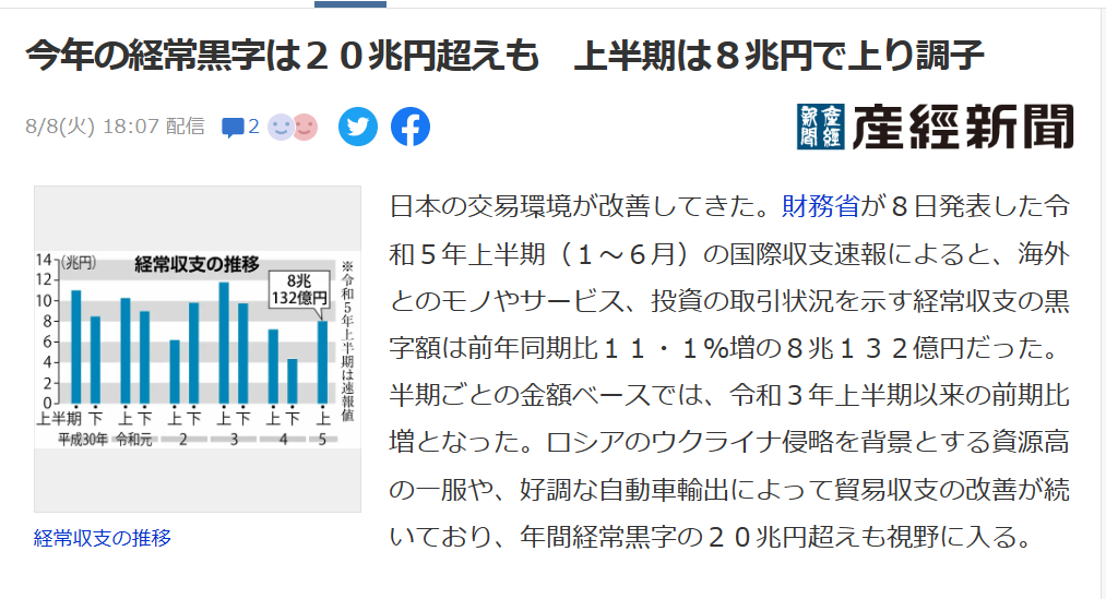 日本の経常黒字