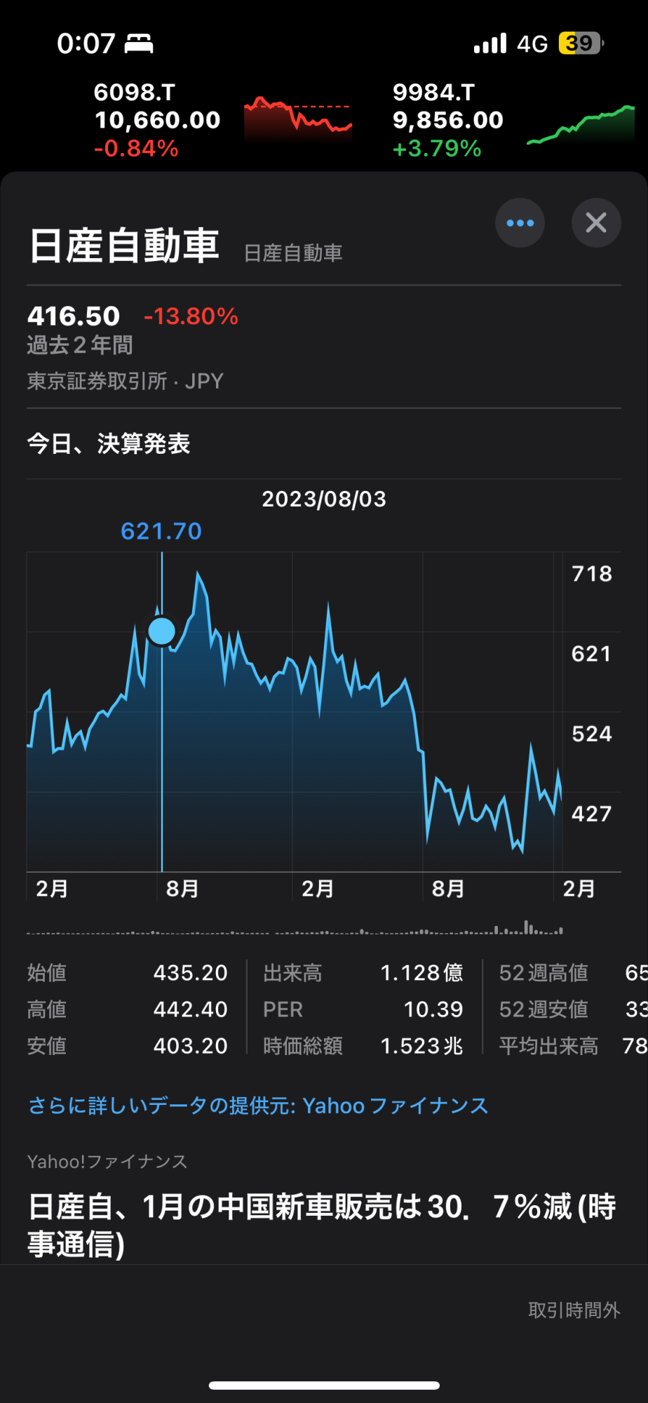 生意気にも日産・ホンダ・トヨタあたりを空売りしていたようだが、日産以外はだいぶ反発してたみたいだからな。