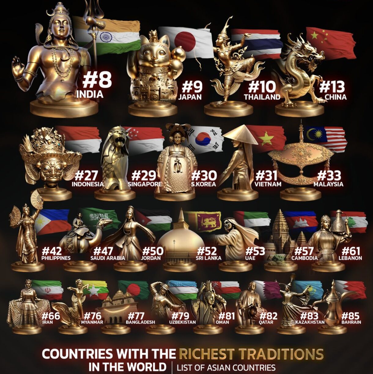 「世界で最も豊かな伝統を持つ国ランキング」韓国は30位と振るわず、自慢の半万年の歴史は無視される