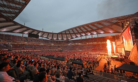 セマングムを離れて全国に分散していたスカウト団員がソウルW杯競技場に集まり、K-POPスターの華麗な舞台を満喫した。韓国を訪問した世界155カ国・約4万人の団員はこの日、雨の中でもレインコートを着て各国の国旗を振りながら、若さのエネルギーを発散した。隊員らは一緒に歌ったり踊ったりしながら韓国での最後の公式行事を楽しんだ。問題が多いスカウト大会だったが、この日、コンサート会場に集まった隊員の表情には、大会への失望よりもK-POPスターと同じ空間で楽しむという期待感が表れていた。この日午後7時から2時間以上続いたコンサートにはNewJeans、ITZY、NCT DREAM、IVEなど人気K-POP歌手が総出動した。