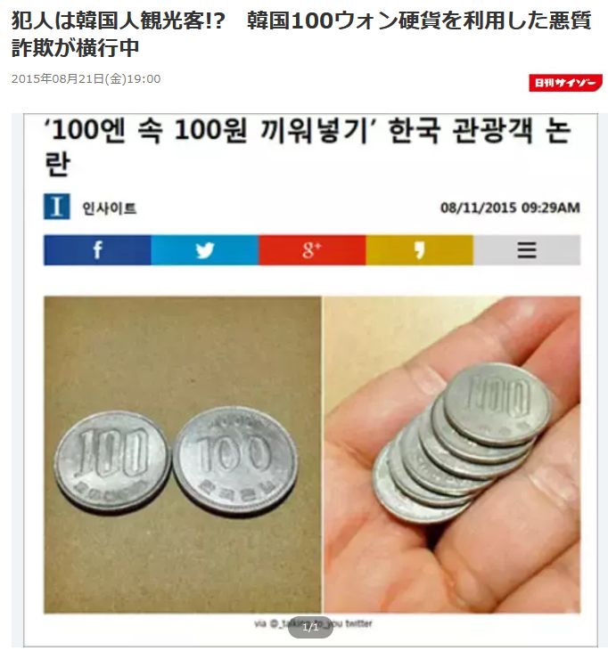 しかし、なぜ今さら使い古された詐欺が再び注目を集めているのか? それは、ある日本人による「韓国人観光客の中に、100ウォン硬貨を混ぜて支払う人が急増している」というツイートが拡散されて、韓国国内でも大きな波紋を呼んだからだ。