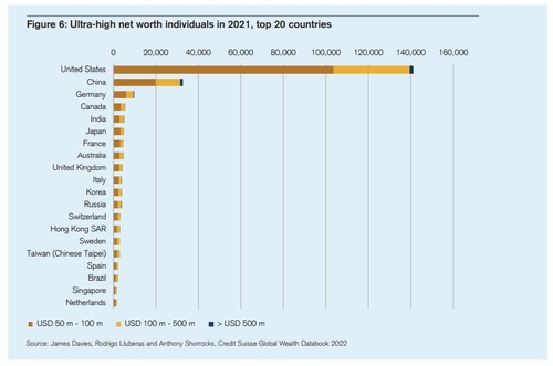 スイス金融大手クレディ・スイスが21日までに発表した世界の富に関する報告書「グローバル・ウェルス・レポート」の2022年版によると、純資産が100万ドル(約1億4400万円)を超える韓国の成人は21年に129万人で、前年比約11万6000人増加した。