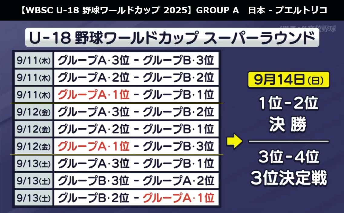 韓国はアメリカに敗れアメリカが2位で決勝は日本対アメリカで決定