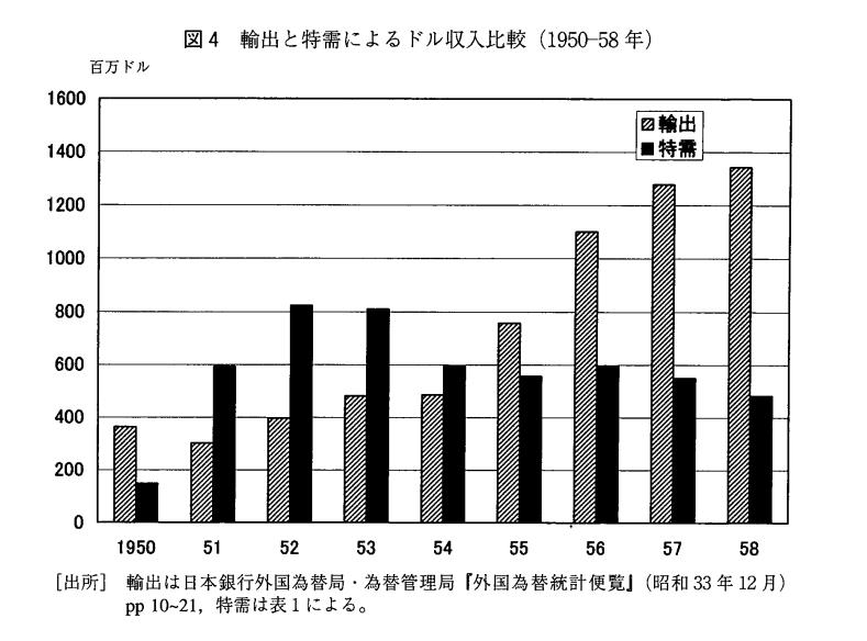 しかし、その際に大増設された生産設備により、朝鮮戦争終了後(1954以後)に朝鮮以外への「輸出」により経済発展したのだよ。添付したグラフを参照せよ。
