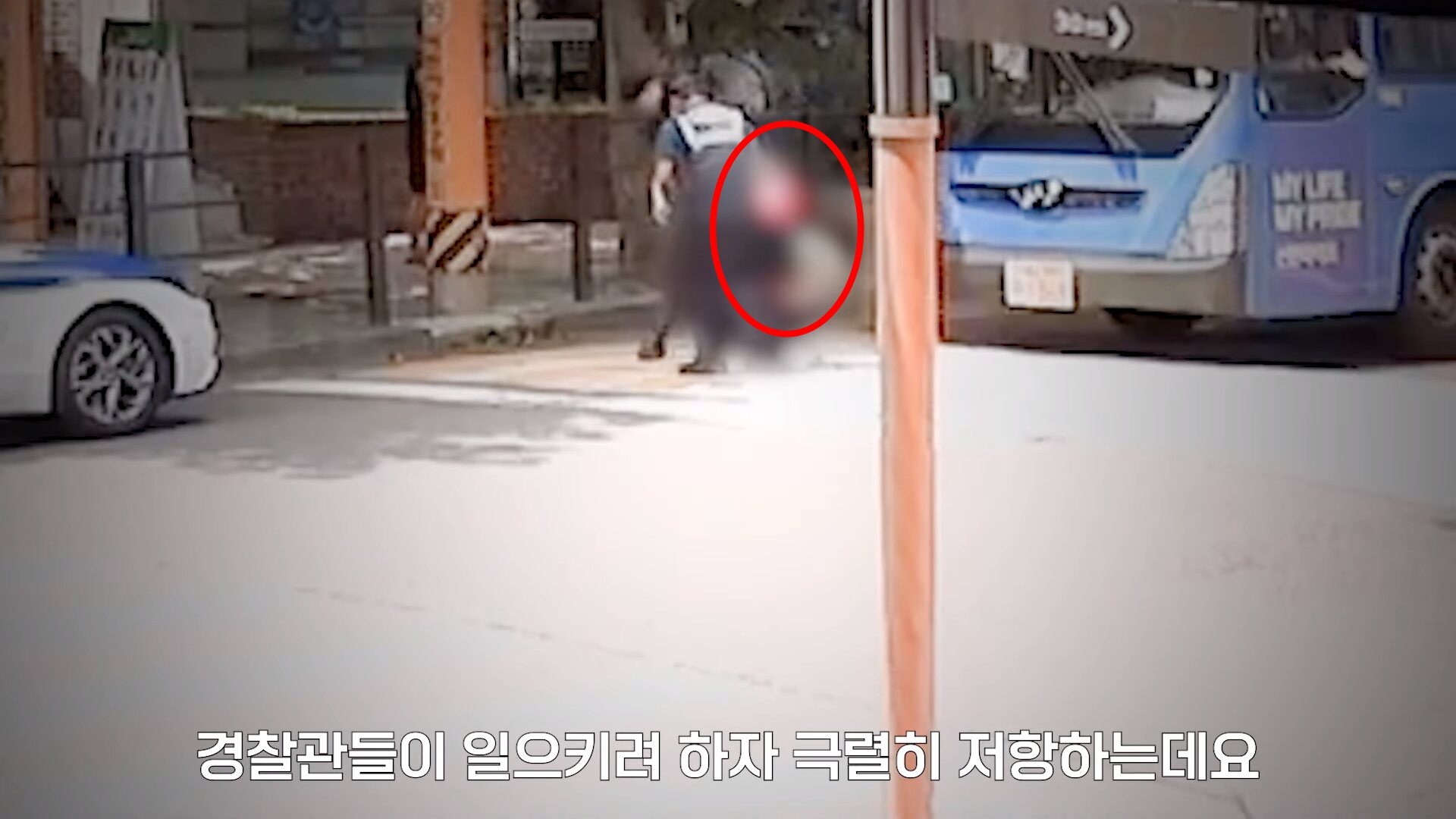 ソウル警察庁が公開した映像によると、この女性は赤信号で止まったバスに近づき、「ドアを開けてほしい」と要求した。運転手は停留所ではないので、それはできないと手振りで拒否すると、女性はバスの前に座り込んだ。そのため、バスだけでなくバスの後ろにいた車も動けず交通渋滞を引き起こした。