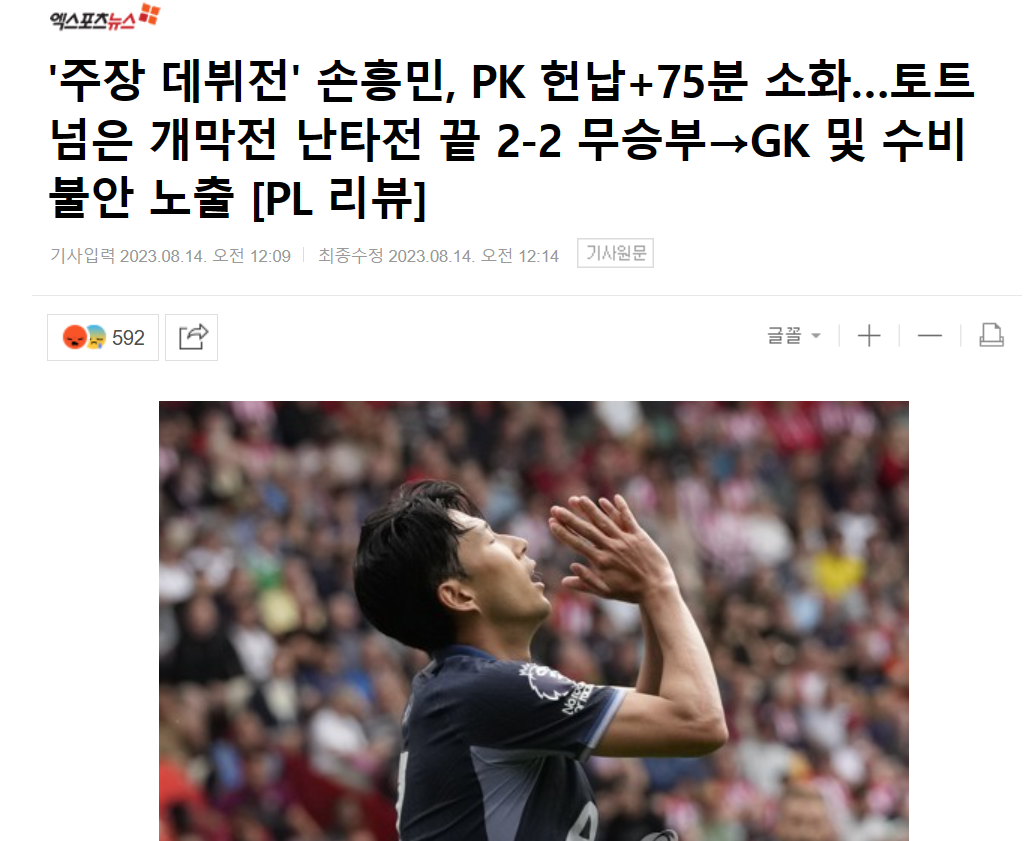 トッテナム主将'ソン・フンミン、開幕戦PK献納→最悪評点- 8