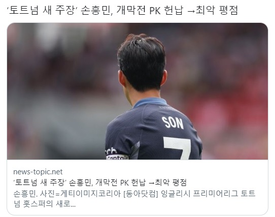 韓国のスポーツ・芸能総合サイト「OSEN」は、「『韓国-トッテナム主将』ソン・フンミン、トップウインガー『9位』、『日本-ブライトン』三笘は8位」と見出しを打ち、日韓ウインガーの優劣に注目。「ソン・フンミンは昨シーズン不振でミトマより評価が低かった」とし、現地メディアの評価に脚光を当てている。