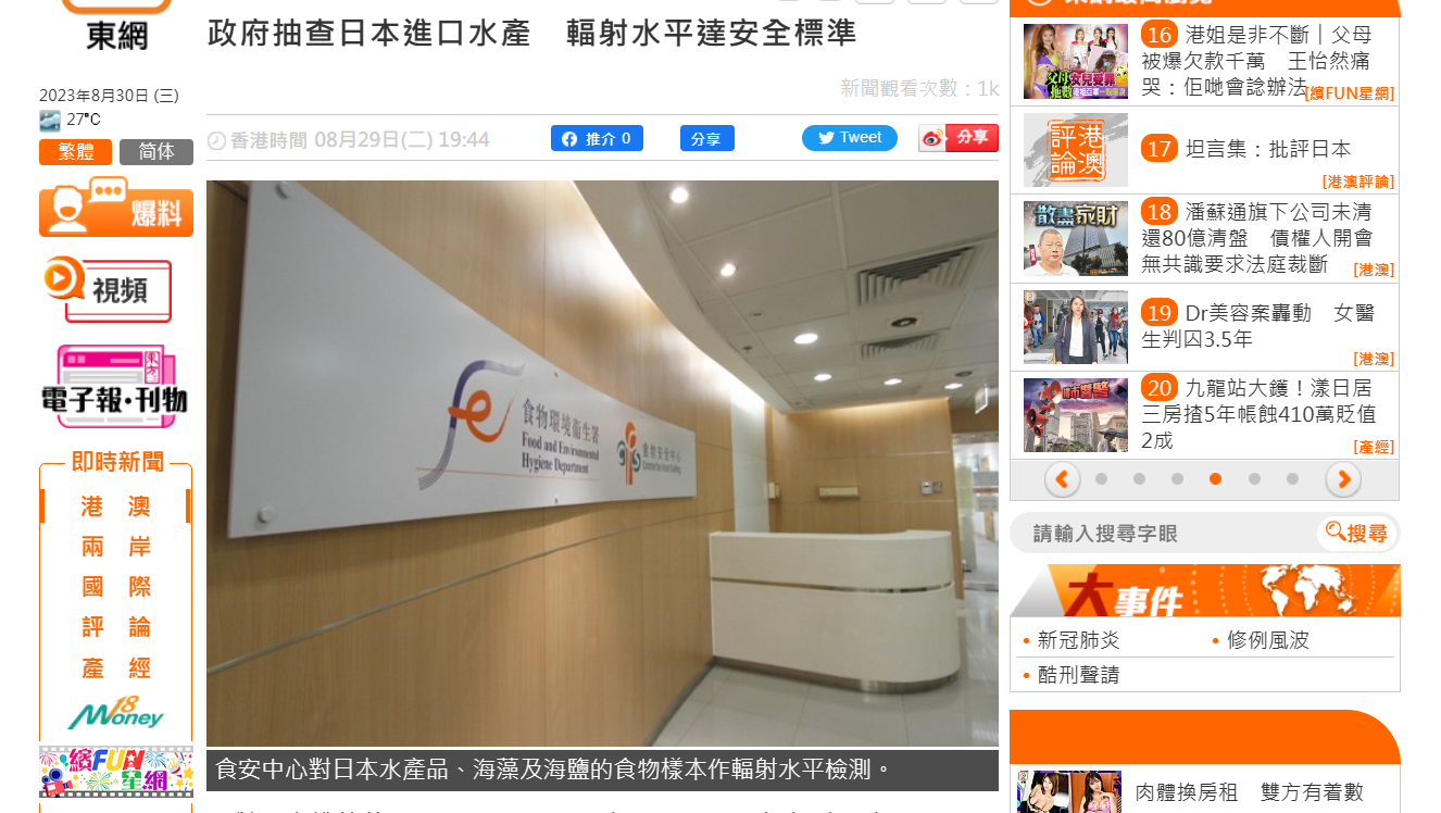 また、農水産保全部は、地元の水産物の50サンプルの放射線レベルを検査し、すべて合格しました。 香港天文台はまた、香港海域の環境放射線レベルの監視を強化しており、これまでのところ異常は検出されていません。
