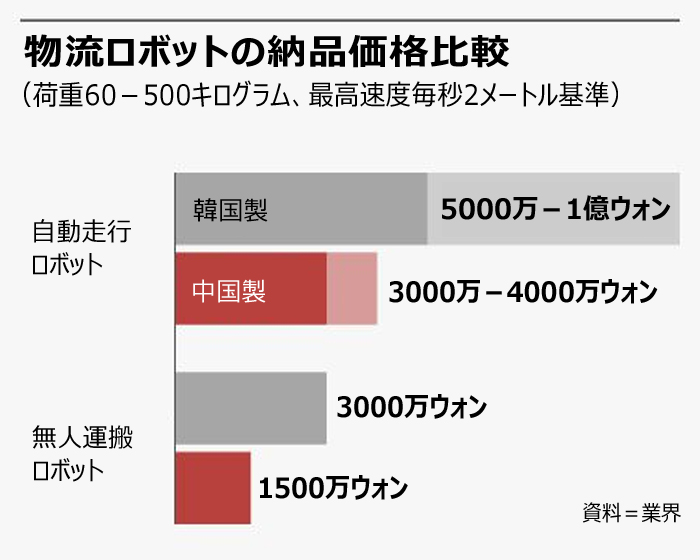 しかし、全体の70%は中国企業の製品と推定される。中国製の最大の強みは価格競争力だ。中国製サービングロボットは1台当たり1000万~3000万ウォン(約108万~325万円)で、韓国製よりも最大で20%安い。中国は国産部品を使用しているが、韓国は日本、米国、ドイツ、中国などから部品を輸入しているために生産コストが高い。FTは自国産業の保護よりロボット普及を優先した韓国政府の政策も中国製の勢力拡大を後押ししたと指摘した。FTは韓国政府がロボット導入を促進するためにサービングロボット購入者に対し、原産地に関係なく購入価格の最高70%を補助しているとした上で、「米国と異なり、韓国は中国製輸入ロボットに関税を課してもいない」と伝えた。中国製サービンクロボット>>>>>韓国製サービンクロボット>>>>>>>朝鮮人労働者