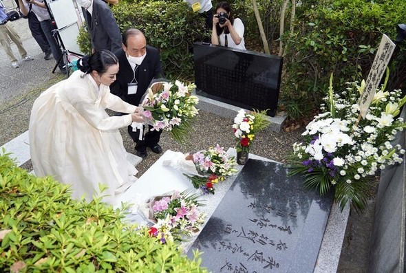 この後、歌手チャン・サイクさんが舞台で「アリラン」「春の日は過ぎゆく」を歌った。行事に参加した在日韓国人と政治家も「アリラン」を静かに共に歌った。チャン・サイクさんは公演の後、「今日の私の歌が亡くなった方々に少しでも慰めになり、同胞の皆さんに力になることを望む」と語った。>>373